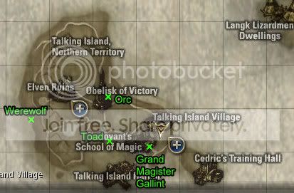 Talk to the Gatekeeper to teleport to the Dark Elf Village. Run up the stairs and talk to a Magister to learn all your skills.