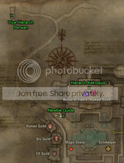 This guide will not explain the interface, so if you are unfamiliar or uncomfortable with it, please use the Tutorial Guide and the Lineage II New Player Guide on the website. If, along the way, you need further help finding what or who you're looking for, try using a combination of all the resources: the guide, the in-game map (look for the gold pin), and the quest window.